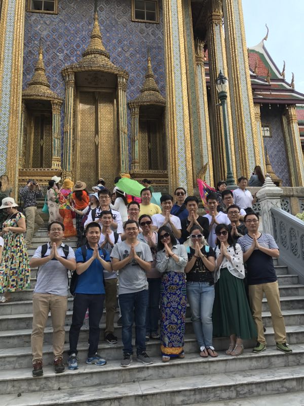 這幾日藍眼科技團隊先后游覽了大皇宮、玉佛寺、水上市場綿陽牧場、珊瑚島、月光島、莎美珊公主島、四面佛、熱帶水果園,觀看泰國特有的人妖歌舞秀等風(fēng)景名勝。其中,大皇宮是結(jié)合了泰、中、西藝術(shù)風(fēng)格,而玉佛寺則是廟群龐大,只能用金壁輝煌來形容,壁畫的數(shù)量也令人嘆為觀止,還有嫵媚妖嬈的人妖歌舞秀等等,讓我們度過了一段多姿多彩的泰國之旅。